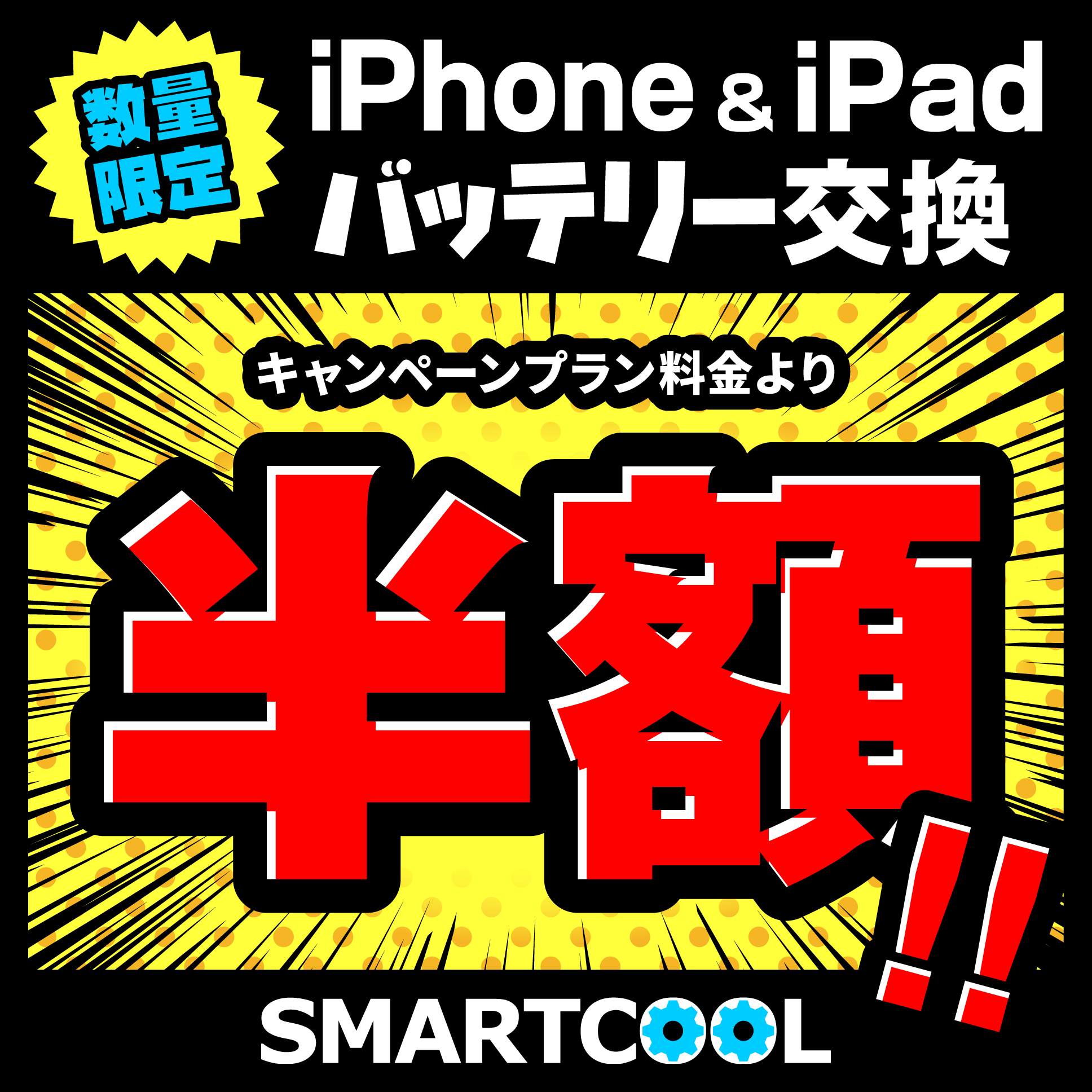 3月20日(金)~3月31日(火)まで数量限定でiPhone&iPadバッテリー交換半額キャンペーンを開催いたします!!